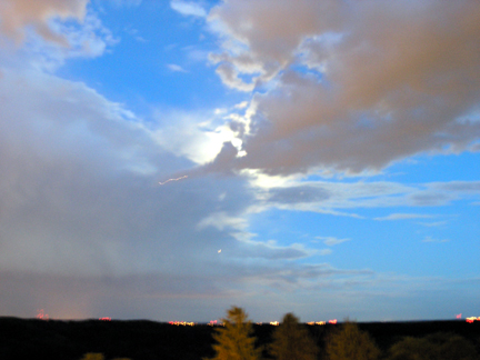 I'd been kept pretty busy at the same time my home computer was put out of service for two days following its power supply's untimely demise — so blogging has still been a little lighter than normal. At least it seems that way to me. But don't think I've been neglecting uBlog-related activities. The photograph above is, in fact, a nighttime shot and I've plenty more skyscapes to present (the weather's been both odd and picturesque). All in good time.