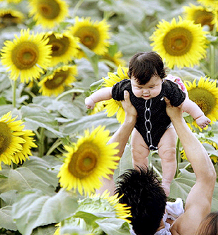 August is sunflower season in Yamanashi Prefecture and for natives and tourists alike, Akeno Village is said to yield two hundred and fifty thousand of the majestic plants for an annual festival. Judging by photographs documenting the attraction over the last several years, visitors seem compelled to brave the botanic crowd that is an enormous sunflower field just nearby the Akeno Flower Center, and commune with nature by being swallowed by it.