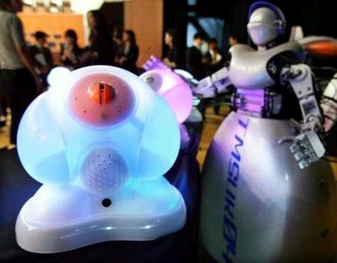 It was TMSUK-4 that introduced Roborior, the company's commercial overture to cutting-edge Japanese households. Christened from a compound of "robot" and "interior," the squat, white, globular machine — oddly cherubic, if with a fleeting resemblance to the lethal excursion pods from 2001: A Space Odyssey — is a likely competitor of Mitsubishi Heavy's Wakamaru. Entryways, valuables and pets are all under the aegis of Roborior, which sends a live video transmission to its masters by cell phone. The unit is said to emit a soft glow, drawing those nearby into "a relaxing mood." Judging from a corresponding pool photograph that phrase may be a euphemism for "trancelike docility." All the better: for over ten thousand dollars more, Wakamaru is programmed to stand guard. If an LED anodyne can prevent the unfortunate burgling of an heirloom, home theater components or even little Gongoro, well then, let intruders see neon pink, blue and purple haze.