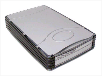 ![]() Last September I raved about a Plug-and-Play external hard drive enclosure made by Taiwanese company Bafo. Make no mistake, I still use two for a rotating backup scheme at the office; but a combination of design flaws and stock shortages have turned me to the Alpha Digital PM-350U2-PCS, pictured above. Refer to the Bafo link for an explanation of what an external enclosure is. The ADI serves its purpose but exceeds the Bafo's performance on four counts. First, connection is problem-free (just make sure you have drivers and the enclosed hard drive jumper is set for Cable Select). Second, the unit is fanless; USB is not the medium for high-usage drives, and so storage operations are better served by the absence of an afterthought component to go on the fritz. Third, because the ADI sports an on/off switch, you can actually control usage of the drive without yanking cables (on that note, one complaint is that the DC input plug fit isn't as snug as I'd like). Fourth, ADI is to be commended for blending utility with style: the enclosure is paneled by plastic-embedded metal. Prime Space Odyssey material. I was disappointed to neither be on a mission to Jupiter nor able to jog around a centrifugal crew cabin. Michael Ubaldi, January 28, 2004.